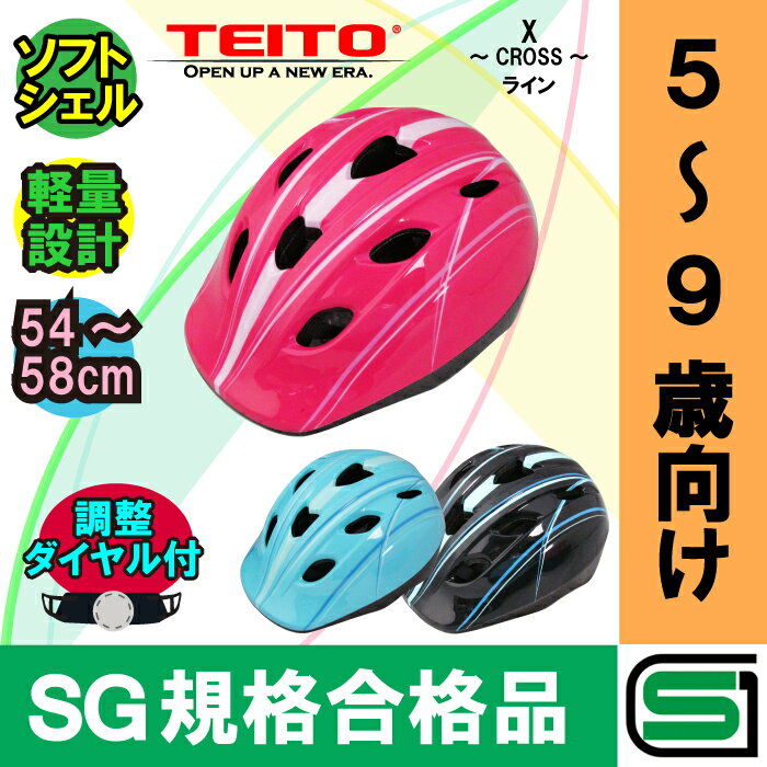 【SG規格合格品】【TEITO(テイト)】子供用ヘルメット 自転車用ジュニアヘルメット YJ-57 Mサイズ(54〜58cm)Xラインピンク 4歳以上 全3色 女の子用 男の子用 小学生 【SG規格 子供用ヘルメット】