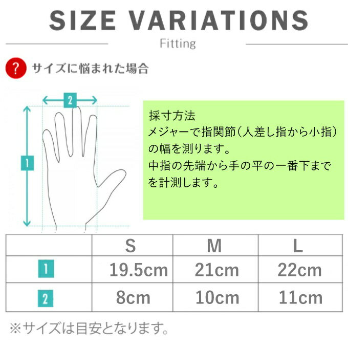 ■カラー:SO/002 ( Spun Out ) ■サイズ: S ( 指関節の幅/8cm、手の長さ19.5cm ) M ( 指関節の幅/10cm、手の長さ21cm ) L ( 指関節の幅/11cm、手の長さ22cm ) ※指関節の幅は人差し指から小指の幅です。
