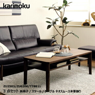 カリモク リビング3点セット【WU6123 長椅子×1・スツール×1・TT8811テーブル×1 ネオスムース・ソフトグレイン本革張り】ソファ 木肘 応接セット