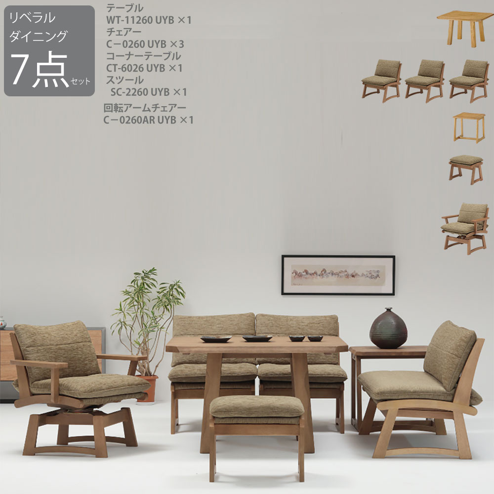【本州、四国は開梱設置無料】 ミキモク 雅・リベラル LD7点セット 【テーブル、コーナーテーブル、チェア3脚、スツール、回転アームチェアのセット】 ミディアム WT11260UYB C-0260UYB CT-6026UYB SC-2260UYB C-0260AR UYB ダイニングセット 雅 リベラル