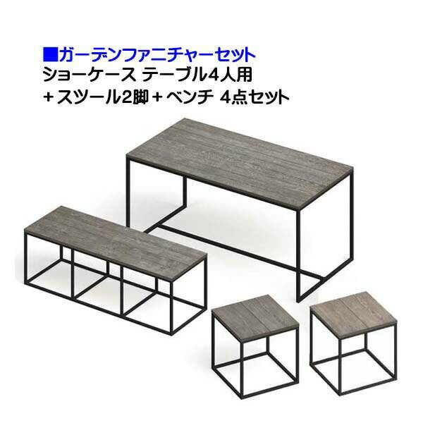 【オンリーワン】ショーケース テーブル4人用?スツール?ベンチ 4点セットお庭 や テラス を おしゃれ な 空間に 演出する シンプル な テーブル |ガーデン テーブル セット ガーデンチェア バルコニー ベランダ ファニチャーセット【送料無料!】